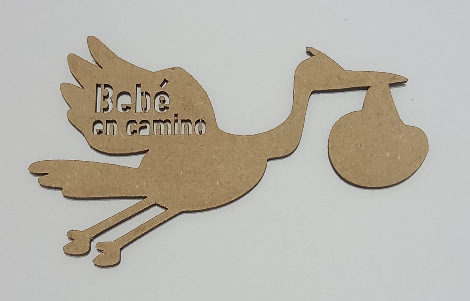 Letrero Cigüeña Bebé en Camino de 97 x 59 cm en mdf natural de 3 mm de espesor.
