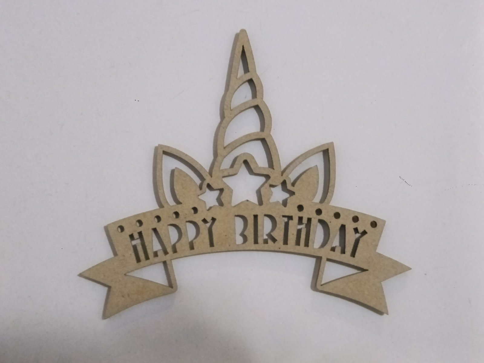 Letrero Unicornio Happy Birthday en mdf natural Convierte cualquier fiesta en un mundo de fantasía con este encantador letrero de unicornia con la frase «Happy Birthday»,